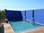 La piscine est accessible du jardin mais aussi directement de la terrasse, entourée d'un mur à l'ouest et au sud ouest, elle permet d'en profiter sans qu’aucun vis à vis gênant ne vienne troubler sa tranquillité. Le mur lui permet également d'être protégée du vent d'ouest, elle conserve de ce fait une température agréable une grande partie de l'année. Son jeu de cascade et de lumière en font un élément de décor et d'animation même lorsque l'on ne l'utilise pas. Un mobilier adapté et une barrière amovible assure sa sécurité.
